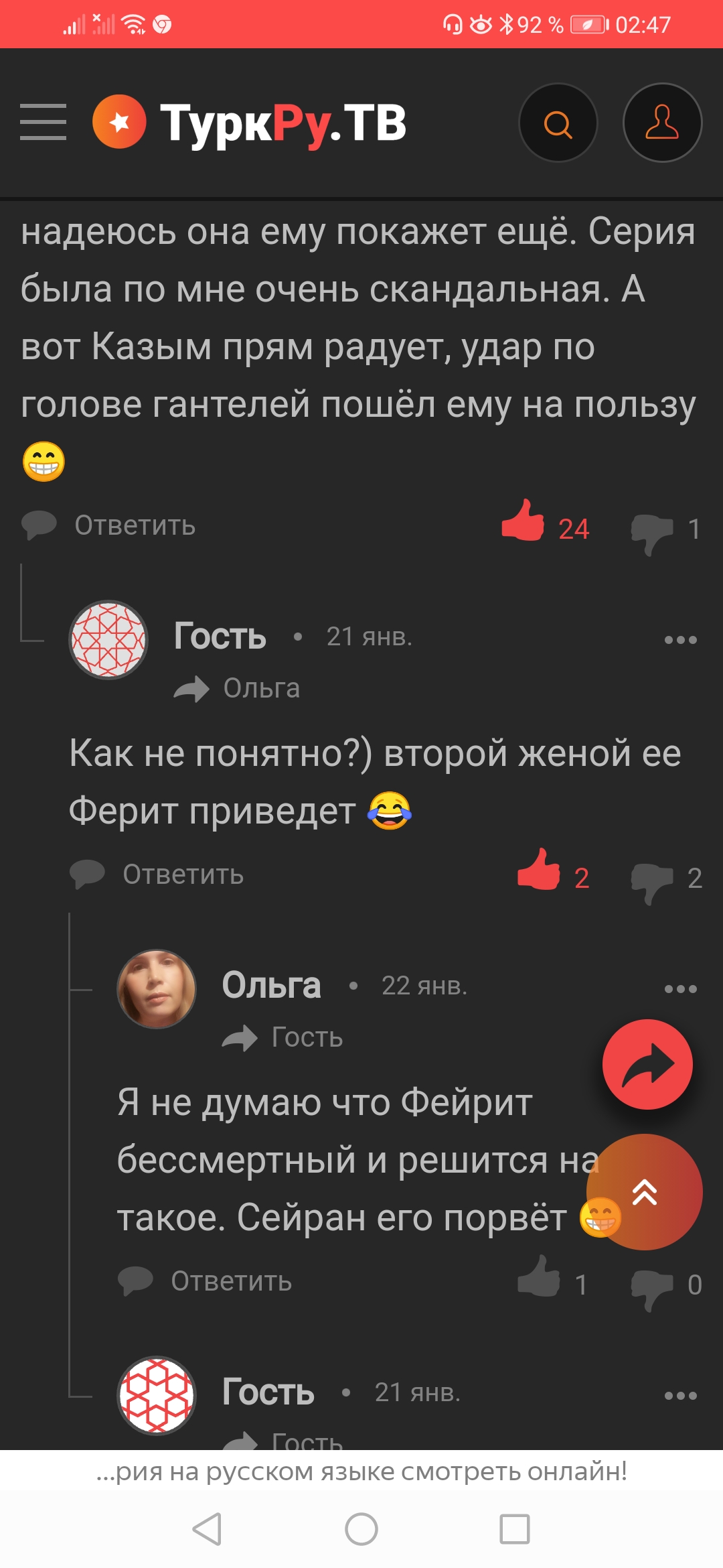 Пусть прийдет Казым и увидит это. Ойййй что он там устроит??? В доме все «мужчины» развратные. Сейран ни в коем случае нельзя отступать . Как же я хочу, чтобы эта девушка добилась ошеломительного успеха,, но для начала- развелась с этим душевнобольным. Хочу , чтобы он сгорал от ревности и жил со своей скучной Пелин, хотя и ее жалко, она больна этим Феритом , у нее нездоровая зависимость от него.
